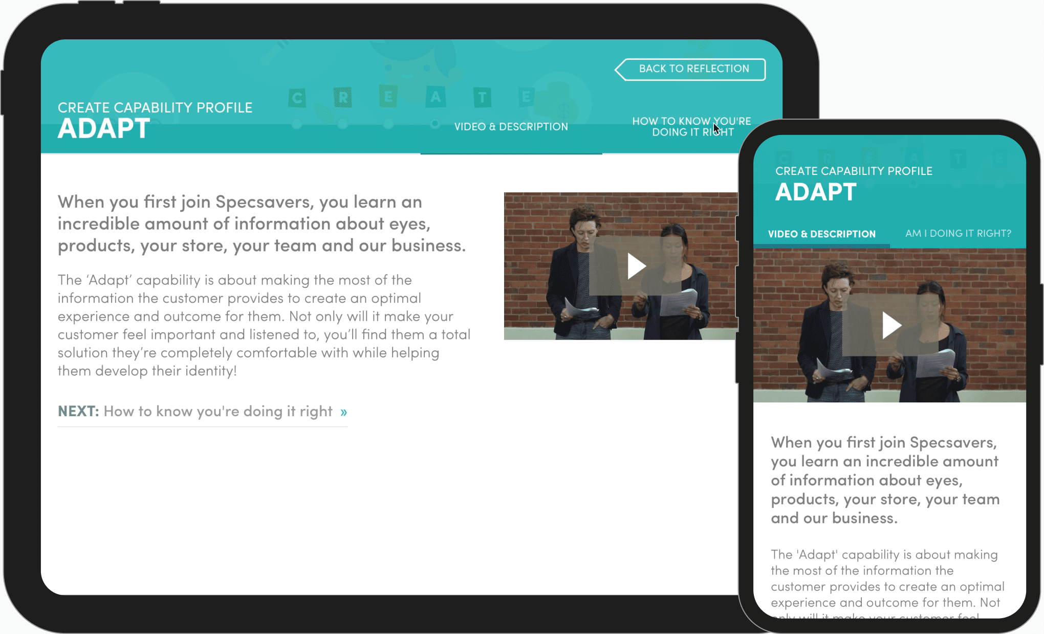 • App used as a core driver of the 'CREATE' customer service training received by all Specsavers store staff